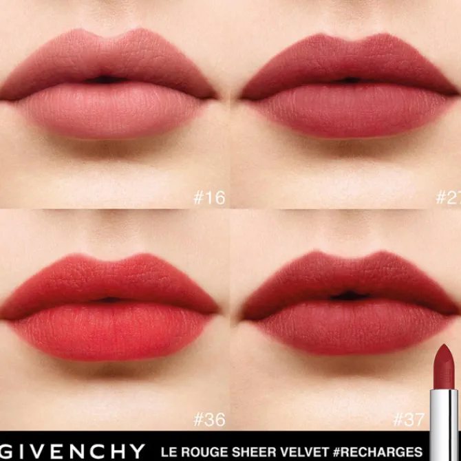 Logée dans un écrin luxueux et élégant, au mécanisme innovant, la recharge du nouveau rouge à lèvres mat Le Rouge Sheer Velvet représente une étape importante vers plus d’éco-responsabilité. 4 teintes iconiques de la Maison Givenchy, dont la célèbre teinte N°37 Rouge Grainé, sont disponibles pour passer sans fin d’une teinte à une autre.