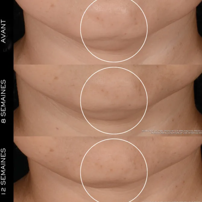 – Réduction des taches : les taches sont moins visibles, plus petites et moins nombreuses : -22% (3)