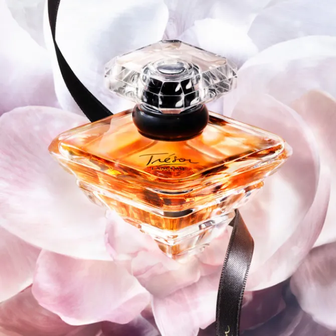 L’eau de parfum dévoile les notes fleuries, fruitées, poudrées et ambrées de Trésor. Ce flacon au design précieux vient se lover entre les mains comme une offrande. Parce que l’amour est un Trésor, il rend la femme aussi radieuse et précieuse que le parfum qu’elle porte. Il flotte dans l’air un parfum d’émotion. Symbole d’amour éternel, un Trésor à porter chaque jour, lors de chaque moment précieux d’amour.