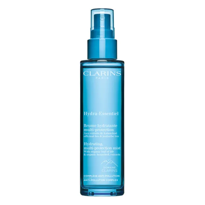 – LE (COMPLEXE MULTI-HYDRATANT) CLARINS : Au cœur de la Brume Hydra Essentiel, l’extrait de kalanchoé officinal bio combiné à l’acide hyaluronique favorise la synthèse des « molécules éponges » et enfin l’extrait de joubarbe bio limite le phénomène d’évaporation.