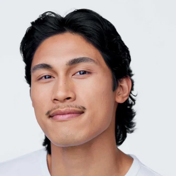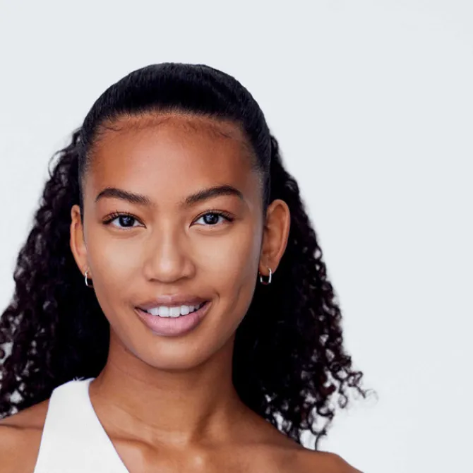 3. À l’aide du Pinceau Teint ou du bout des doigts, appliquer le fond de teint sur la peau, en commençant par le centre du visage et en estompant vers la racine des cheveux et la mâchoire.
