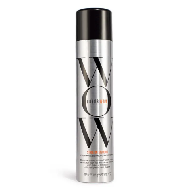 Le spray texturant Style on Steroids est idéal pour les cheveux colorés.
