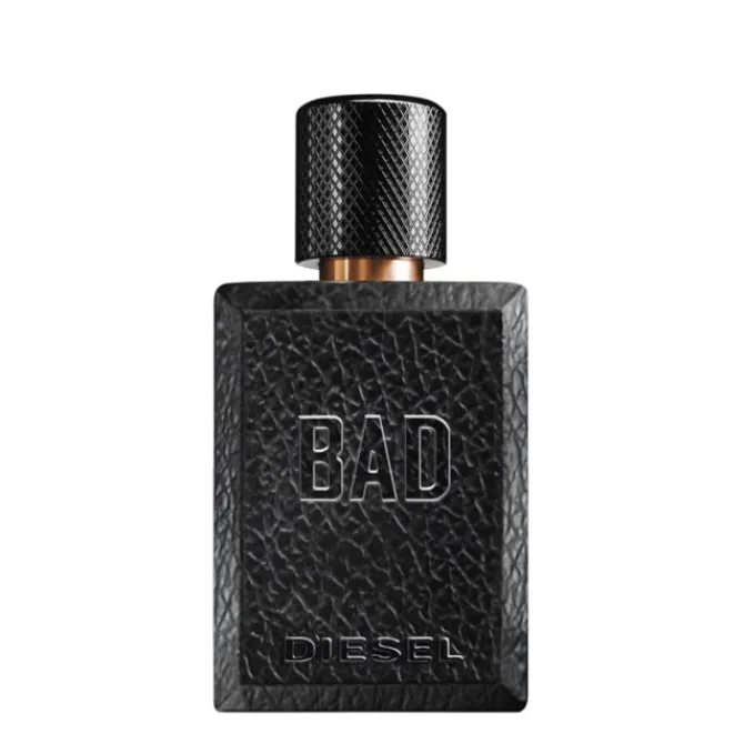 Afin de réaliser ce nouveau parfum, Diesel a fait appel à un duo de parfumeurs composé d’Anne Flipo et de Carlos Benaïm. Tous deux ont créé une sorte de jeu de séduction olfactif. Celui-ci débute par des notes de tête très vivifiante à base d’agrumes. Qui plus est, ce «rush excitant » est encore agrémenté d’épices. La bergamote, quant à elle, ravive cette envolée piquante d’une fraîcheur mordante. Elle est ici associée à de la cardamome ainsi qu’à la senteur aromatique de la lavande. Incontestablement, Bad est un jus particulièrement masculin. Qui plus est, un ingrédient luxueusement inattendu donne une touche plus provocante et érotique à cet ensemble. Le caviar entre en scène et est ici semblable à un « filet de sueur sur le corps ciselé d’un homme. » Puis, le tabac vient encore enrichir le tout de ses notes rugueuses et viriles. L’ensemble s’achève ensuite par la présence chaleureuse de racines d’iris. Côté flacon, le nouveau parfum de Diesel est contenu dans une bouteille vêtue d’une veste de cuir de motards. En réalité, cette texture ressemble à du cuir mais il s’agit de micro-verre ciselé à l’aide d’une technique développée par Pochet du Courval. Là, le logo transparent de Bad s’inscrit en son centre, dévoilant la couleur cuivrée de son liquide.