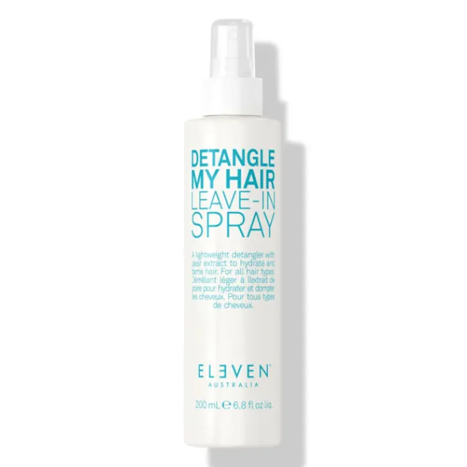 DETANGLE MY HAIR LEAVE-IN SPRAY est un démêlant sans rinçage à la texture légère contenant de l’extrait de poire pour hydrater et discipliner les cheveux.