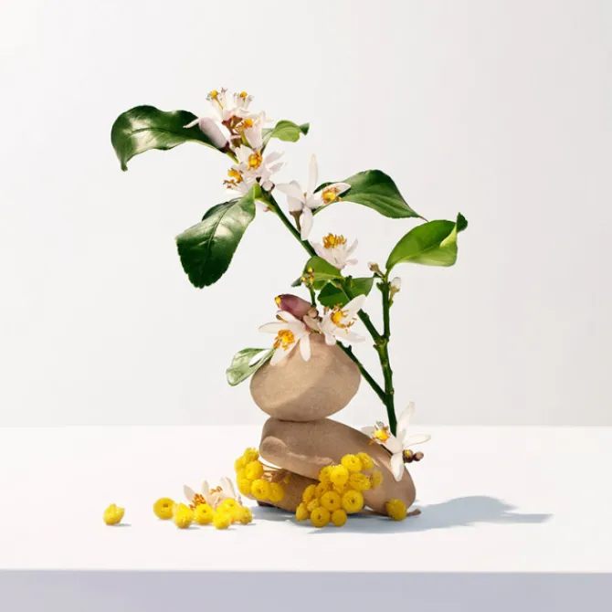 L’Essence naturelle de Néroli aux vertus relaxantes illumine la composition de ses notes fleuries et lumineuses.