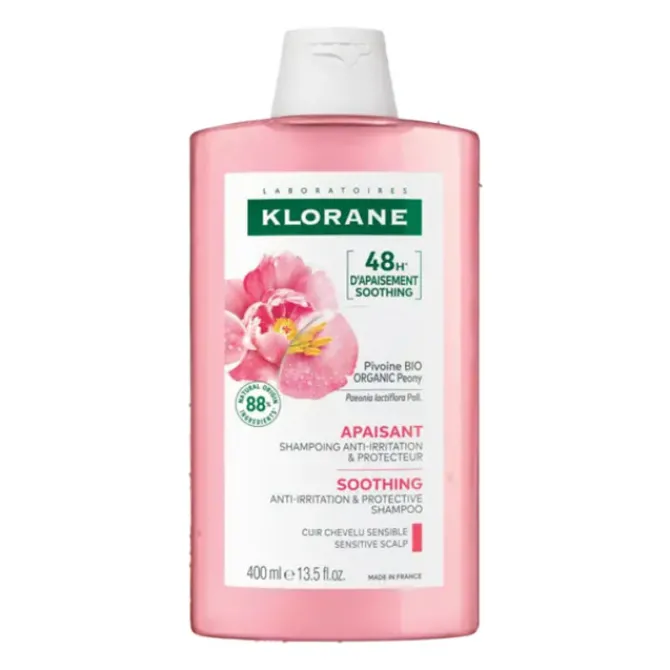 Le Shampoing apaisant Klorane à la Pivoine nettoie et respecte le cuir chevelu irrité et sensible.