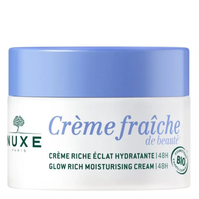La Crème Riche Eclat Hydratante 48h BIO*: un soin formulé et fabriqué en France.