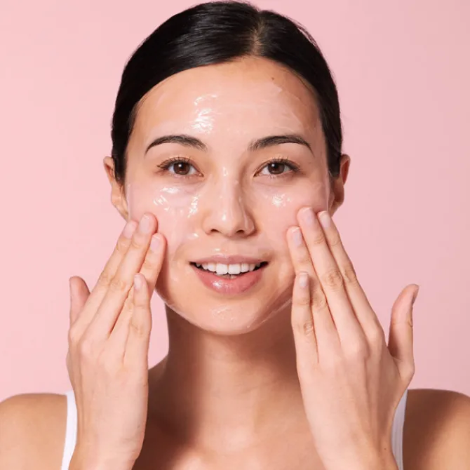 Rincer abondamment à l’eau tiède et sécher délicatement le visage.
