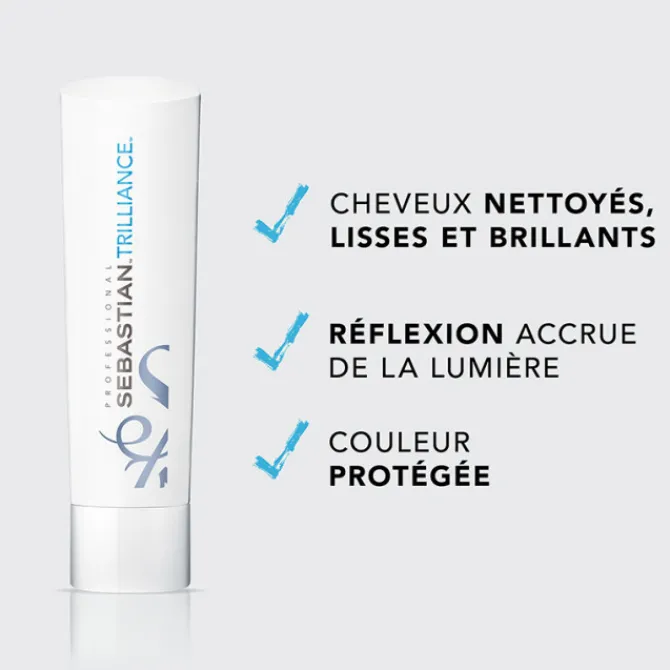 Essorez les cheveux et appliquez le conditionneur Sebastian Trilliance sur la chevelure, en insistant sur les pointes. Rincez abondamment.