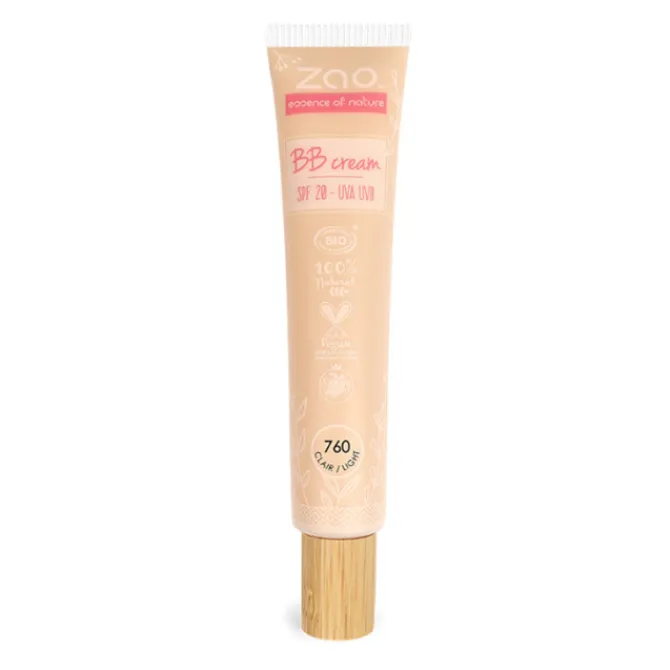 Notre BB crème est certifiée bio, vegan et à 100% d’origine naturelle. Elle est disponible en 3 teintes : 760 Clair, 761 Médium et 762 Hâlé. Grâce à sa texture légère, elle s’applique en fine couche sur une peau nue ou hydratée.